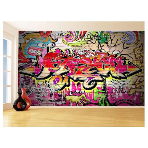 A impressão é feita em vinil adesivo. É um material lavável, impermeável, autocolante e antimofo. O produto cobre uma área de 3,50m, contando com 1,75 metro de altura por 2 metros de largura.