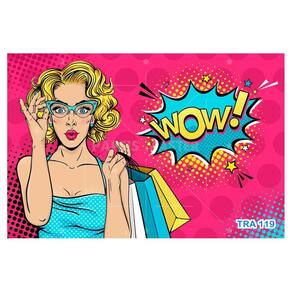 A impressão é feita em vinil adesivo. É um material lavável, impermeável, autocolante e antimofo. O produto cobre uma área de 3,50m, contando com 1,75 metro de altura por 2 metros de largura.