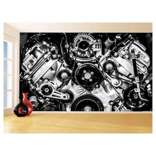 Papel De Parede 3D Carro Antigo Motor V8 Mural 3,5M Cxr03