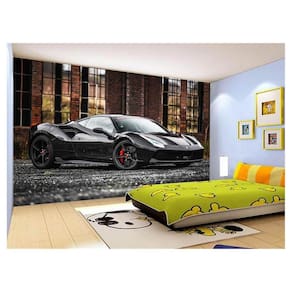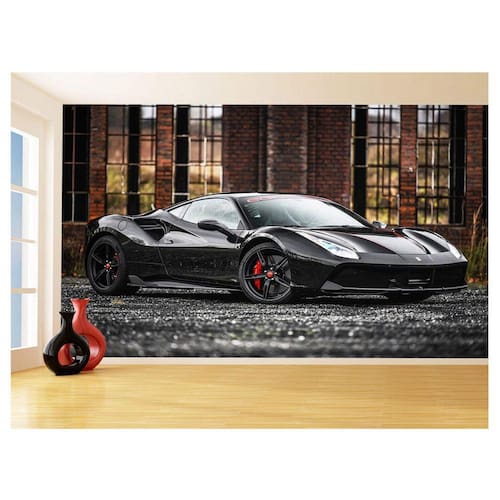 Papel De Parede 3D Carro Ferrari Preto Garagem 3,5M Car163