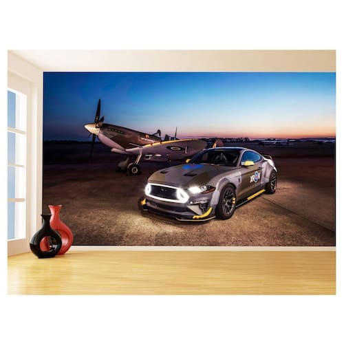 Papel De Parede 3D Carro Ford Mustang Avião Caça 3,5M Car75