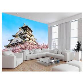 Papel De Parede 3D Cidade Japão Castelo Flores 3,5M Ncd254