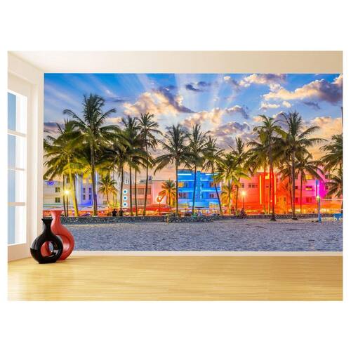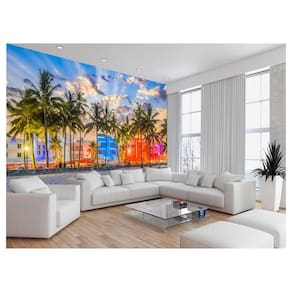 Papel De Parede 3D Cidade Miami Brach Praia Luz 3,5M Ncd357