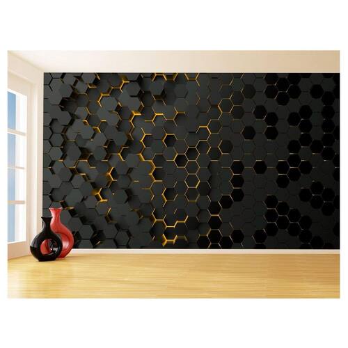 Papel De Parede 3D Colméia Moderno Gamer Amarelo 3,5M Txt39