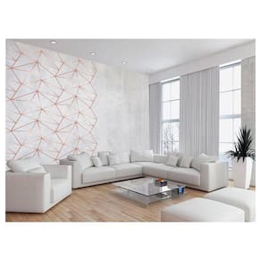 Papel De Parede 3D Concreto Linhas Dourado Rose 3,5M Kkt223