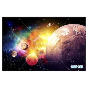 A impressão é feita em vinil adesivo. É um material lavável, impermeável, autocolante e antimofo. O produto cobre uma área de 3,50m, contando com 1,75 metro de altura por 2 metros de largura.
