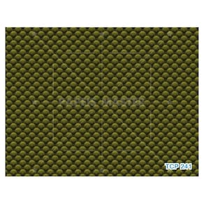 A impressão é feita em vinil adesivo. É um material lavável, impermeável, autocolante e antimofo. O produto cobre uma área de 3,50m, contando com 1,75 metro de altura por 2 metros de largura.