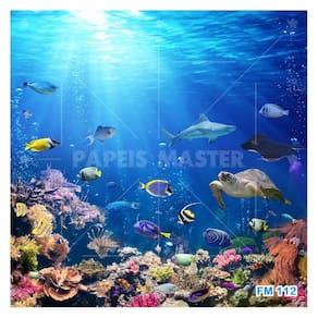 Papel De Parede 3D Fundo Do Mar Peixes Oceano 3,5M Fm112