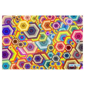 A impressão é feita em vinil adesivo. É um material lavável, impermeável, autocolante e antimofo. O produto cobre uma área de 3,50m, contando com 1,75 metro de altura por 2 metros de largura.