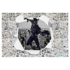 A impressão é feita em vinil adesivo. É um material lavável, impermeável, autocolante e antimofo. O produto cobre uma área de 3,50m, contando com 1,75 metro de altura por 2 metros de largura.