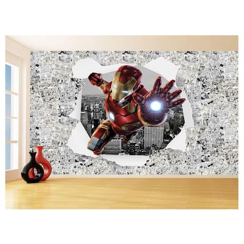 A impressão é feita em vinil adesivo. É um material lavável, impermeável, autocolante e antimofo. O produto cobre uma área de 3,50m, contando com 1,75 metro de altura por 2 metros de largura.