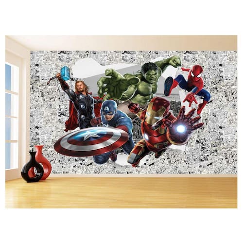 A impressão é feita em vinil adesivo. É um material lavável, impermeável, autocolante e antimofo. O produto cobre uma área de 3,50m, contando com 1,75 metro de altura por 2 metros de largura.