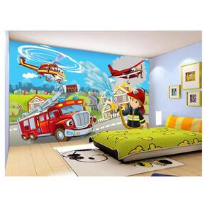 Papel De Parede 3D Infantil Bombeiros Caminhão 3,5M Azs349