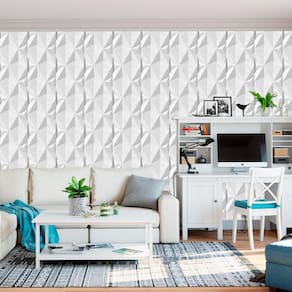 Se sua parede tem por exemplo, 3,40 m largura por 2,7 m altura , você tem uma área total de 9,18m² 3,40 x 2,70 para revestir com o papel de parede.