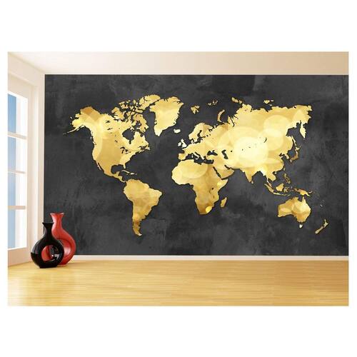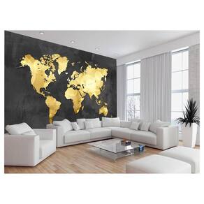 Papel De Parede 3D Mapa Mundi Concreto Dourado 3,5M Nmu48