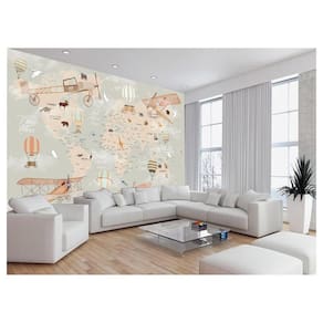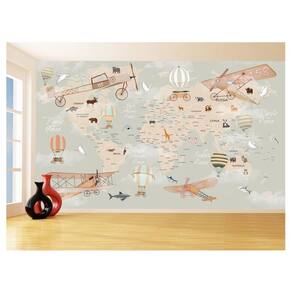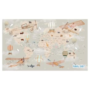 Papel De Parede 3D Mapa Mundi Kids Avião Balão 3,5M Nmu87