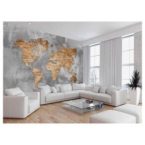 Papel De Parede 3D Mapa Mundi Madeira Concreto 3,5M Nmu44