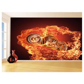 Papel De Parede 3D Moto Esporte Fogo Radical 3,5M Bkm99