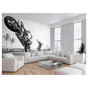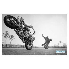 Papel De Parede 3D Moto Grau Empinando Manobra 3,5M Bkm40