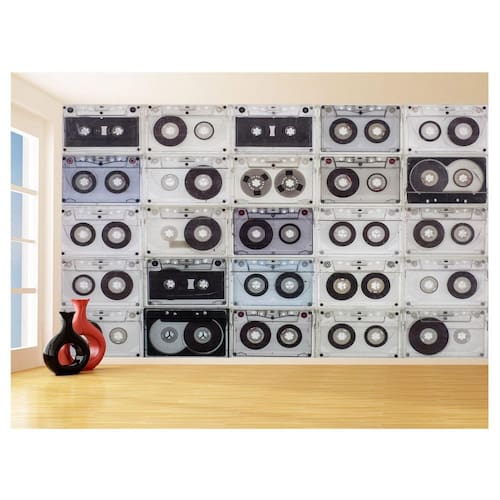 Papel De Parede 3D Musica Fitas Cassete Painel 3,5M Mus105