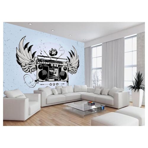 Papel De Parede 3D Musica Toca Fita Retrô Tape 3,5M Mus42