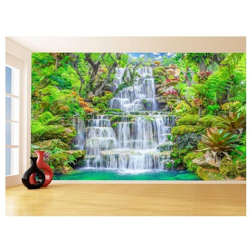 Papel De Parede 3D Paisagem Cachoeira Florestas 3,5M Nch253