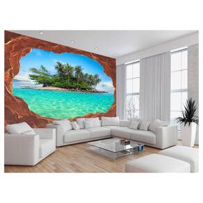 Papel De Parede 3D Praia Mar Caverna Pedras Céu 3,5M Npr294