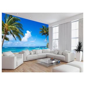 Papel De Parede 3D Praia Mar Coqueiros Céu Azul 3,5M Npr338