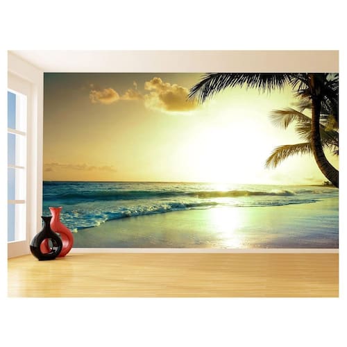 Papel De Parede 3D Praia Mar Coqueiros Céu Sol 3,5M Npr337