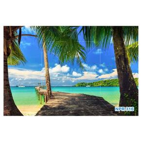 A impressão é feita em vinil adesivo. É um material lavável, impermeável, autocolante e antimofo. O produto cobre uma área de 3,50m, contando com 1,75 metro de altura por 2 metros de largura.
