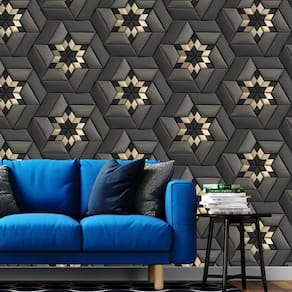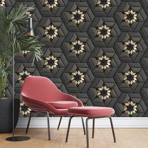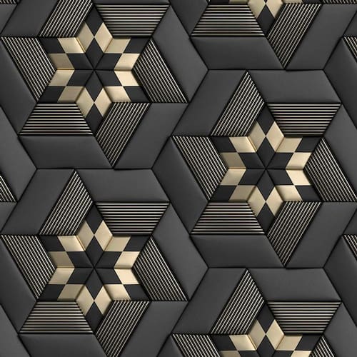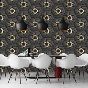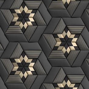 Papel De Parede 3D Preto E Dourado Geometrico Autocolante