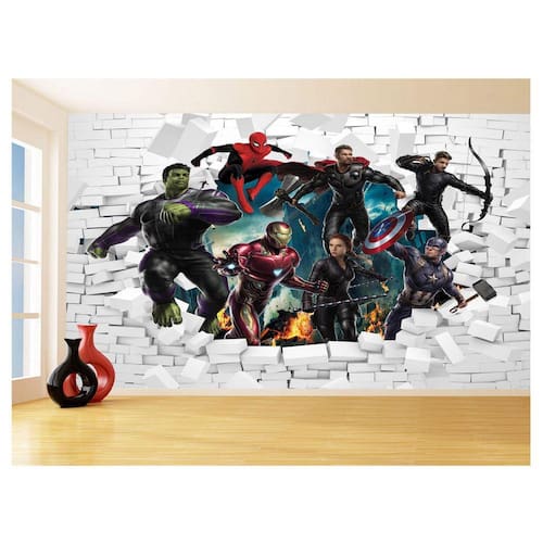 Papel De Parede 3D Vingadores Entrando Quarto 3,5M Nhma114