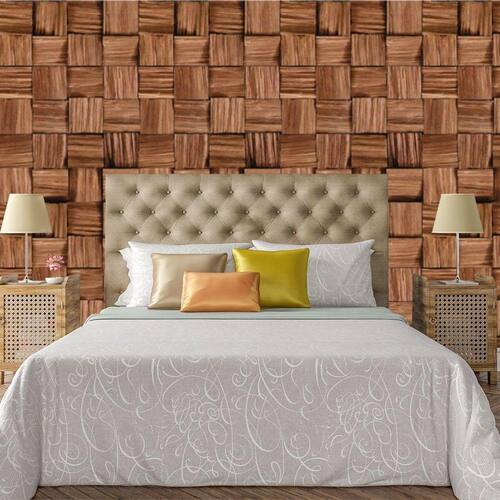 Papel De Parede Adesivo Bloco 3D De Madeira Lavável Cozinha 3m