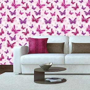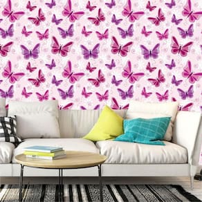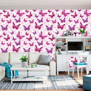 Papel de parede adesivo borboletas lilas e rosas sala quarto