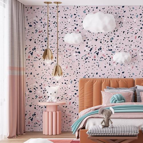 Papel De Parede Adesivo Granilite Rosa Com Azul Escuro - Tamanho: 3,50M