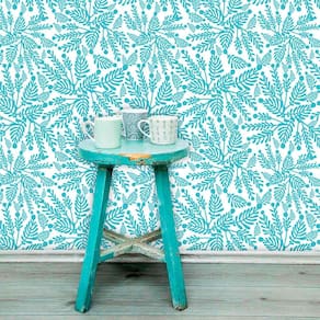 Papel de Parede Adesivo Lavável Floral Folha Azul