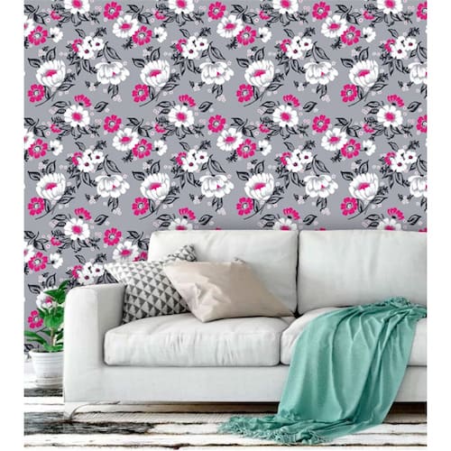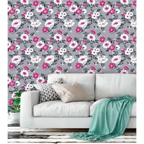Papel de Parede Adesivo Lavável Floral Rosa e Branco