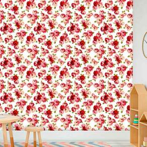 Papel de Parede Adesivo Lavável Floral Rosadas e Vermelhas