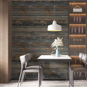 Papel De Parede Adesivo Madeira Antiga Escura - Tamanho: 3,5m