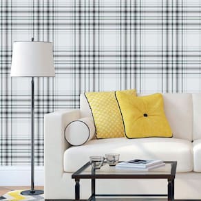 Papel de parede adesivo textura cinza com linhas pretas sala