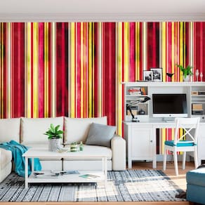 Papel De Parede Adesivo Textura Vermelho E Amarelo Sala