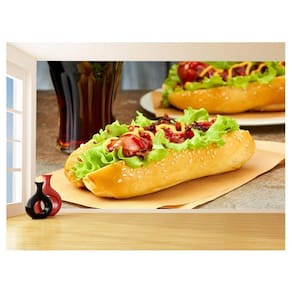 A impressão é feita em vinil adesivo. É um material lavável, impermeável, autocolante e antimofo. O produto cobre uma área de 3,50m, contando com 1,75 metro de altura por 2 metros de largura.