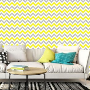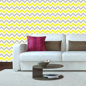 Papel de parede amarelo cinza e branco chevron adesivo sala