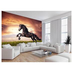 Papel De Parede Animais Cavalo Preto Saltando 3,5M Anm359
