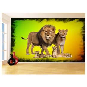 Papel De Parede Animais Leão Família Filhotes 3,5M Anm509