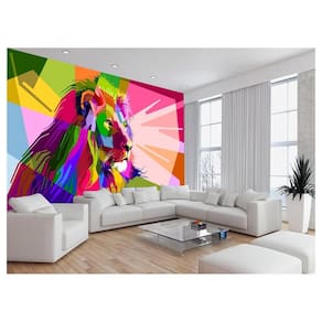 Papel De Parede Animais Leão Rosto Arte Cores 3,5M Anm498