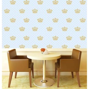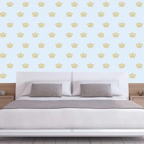 Papel de parede azul claro e coroa autocolante sala quarto