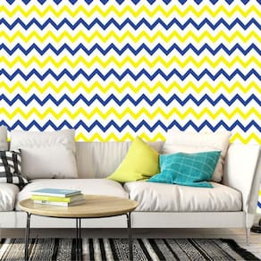 Papel De Parede Azul Escuro Amarelo Branco Chevron Adesivo