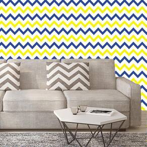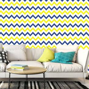 Papel De Parede Azul Escuro Amarelo Branco Chevron Adesivo