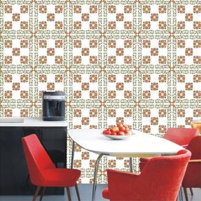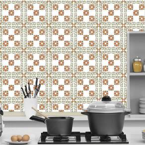 Papel de parede azulejo flores laranja lavatório e cozinha